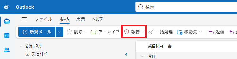 フィッシング詐欺メール(以下、メール)が 受信トレイ に届いた想定 で手順を記します。受信トレイではない場所にメールが届いた場合は、適宜読み替えてください。